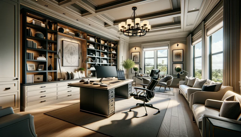 Personalization plays a significant role in the design of a home office. Custom-built shelving, bespoke desks, and unique storage solutions are tailored to meet the specific needs of the homeowner. This customization ensures that the office is not only practical but also a reflection of the owner’s personality and professional image.